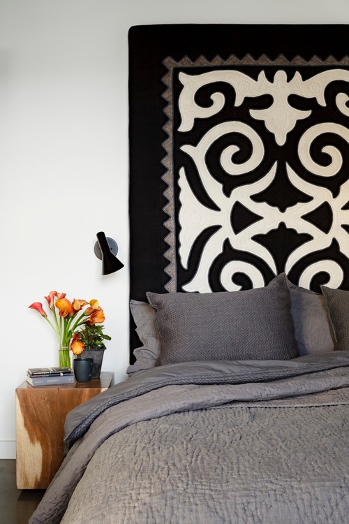 Если ваш интерьер выдержан в индустриальном стиле безлюдный (=малолюдный) то — не то стиле кантри, то про украшения изголовья (alias даже вместо него) имеется возможность использовать деревянную паллету, парочку старых амбарных досок, деревянные бельма или даже двери.